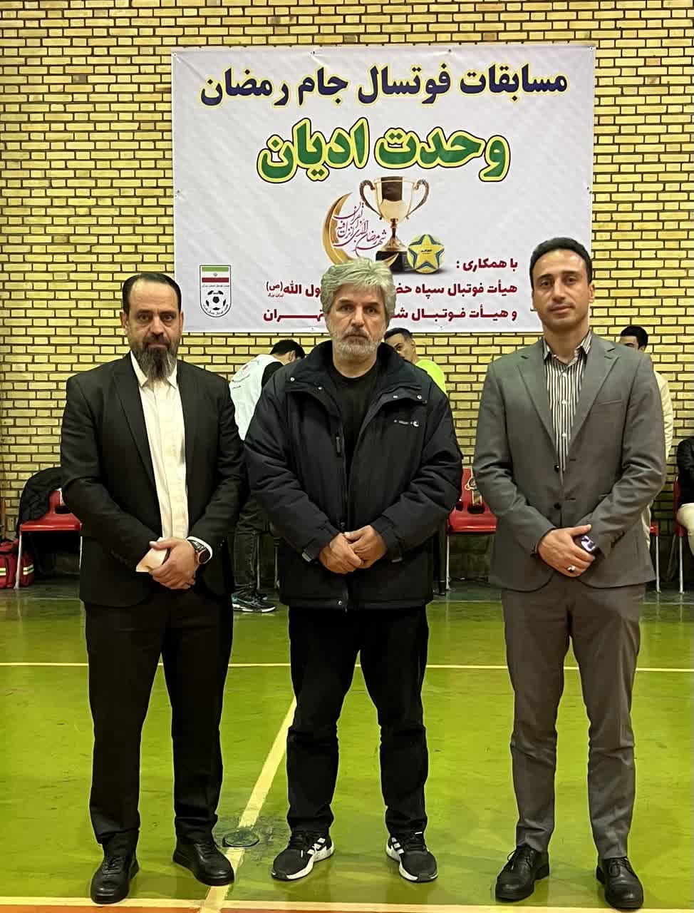 بنابر گفته جواد فرجي رئيس هيات فوتبال سپاه حضرت محمد رسول الله ( ص ) تهران بزرگ ، مسابقات فوتسال جام رمضان وحدت اديان با شركت تيم هاي هموطنان ارامنه ، هموطنان زرتشتيان ، هموطنان آشوري ، هموطنان كليميان ، هموطنان مسلمان از شب چهار شنبه ۱۴۰۳/۱۲/۱۵ با حضور محمد حامدي رئيس هيات فوتبال شمالشرق تهران ، علي پازوكي اسطوره اخلاق و پيشكسوتان نام آشناي فوتبال و فوتسال كشور ، عباس انصاري دبير هيات فوتبال شمالشرق تهران ، اكبر صادقي نيا مدرس رسمي AFC و استعداد ياب استان تهران ، دكتر علي عاطف رئيس كميته فوتبال خياباني استان تهران ، ياسر خزلي رئيس كميته طناب زني استان تهران تهران ، مرتضي رجايي مربي منطقه ۳ استعداديابي استان تهران ، شروع شد و گفتني أست اين مسابقات با شعار ايجاد وحدت و همدلي بين ورزشكاران عزيز از اديان مختلف برگزار مي گردد .