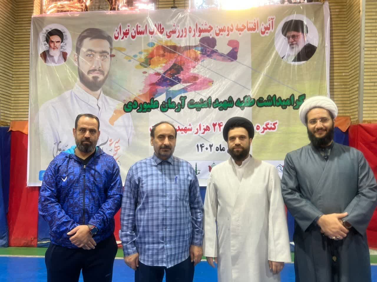 به همت مركز تربيت بدني سپاه حضرت محمد رسول الله ( ص ) تهران بزرگ دومين جشنواره ورزشي طلاب استان تهران گراميداشت طلبه شهيد امنيت آرمان عليوردي و يادبود ۲۴۰۰۰ شهيد پايتخت در ده رشته ورزشي برگزار شد .