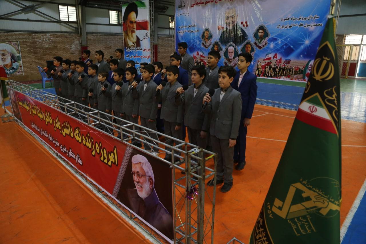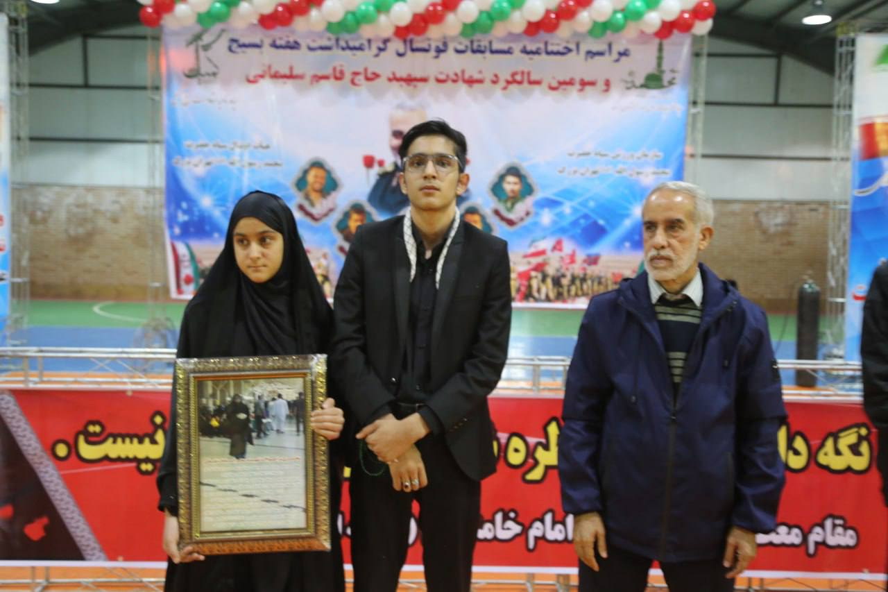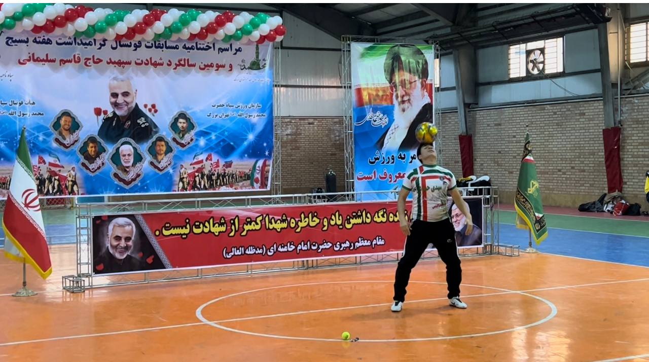 مسابقات فوتسال گراميداشت هفته بسيج و سومين سالگرد شهادت سپهبد حاج قاسم سليماني در سالن ۹ دي سپاه ناحيه كميل در يك فضاي صميمي و دوستانه با حضور سردار يزداني مسئول سازمان ورزش سپاه حضرت محمد رسول الله ( ص ) تهران بزرگ ، سرهنگ اوركي فرمانده سپاه ناحيه كميل ، خانواده محترم شهيده نقبائي از شهداي امنيت ، حسن رنجبر مسئول ورزش قهرماني و حرفه اي سپاه حضرت محمد رسول الله ( ص ) تهران بزرگ ، سروان قنبري مسئول تربيت بدني سپاه ناحيه كميل ، سروان خسروي مسئول سازندگي سپاه ناحيه كميل ، جواد فرجي مسئول هيات فوتبال سپاه حضرت محمد رسول الله ( ص ) تهران بزرگ، وحيد سليماني و محمد داود پور از داوران نمونه ليگ برتر فوتسال كشور ، مهدي حب درويش ( ركورد دار روپايي و حركات نمايشي با توپ در جهان ) برگزار شد .