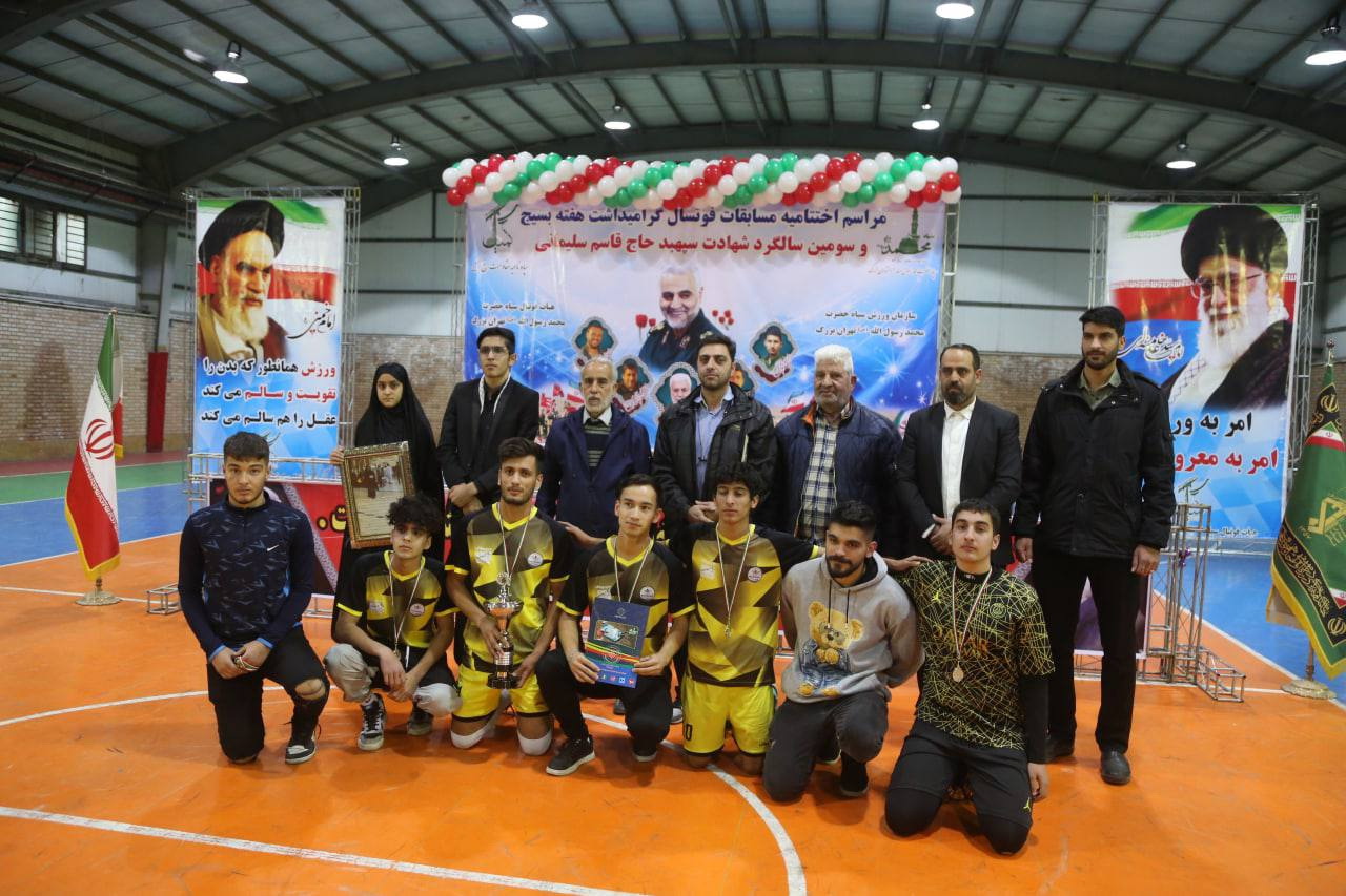بنابر گفته جواد فرجي مسئول هيات فوتبال سپاه حضرت محمد رسول الله ( ص ) تهران بزرگ ، مسابقات فوتسال گراميداشت هفته بسيج و سومين سالگرد شهادت سپهبد حاج قاسم سليماني برگزار شد.